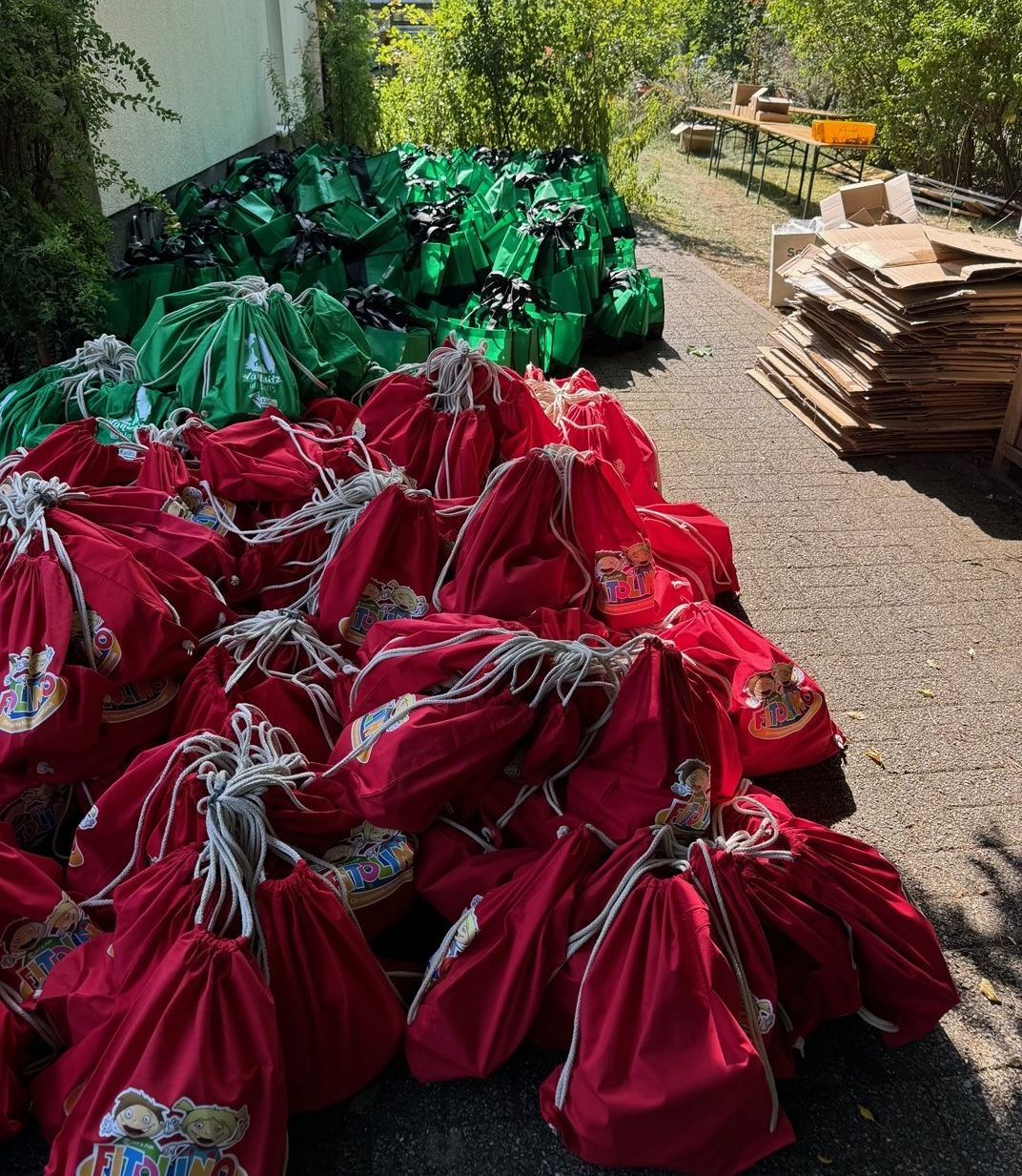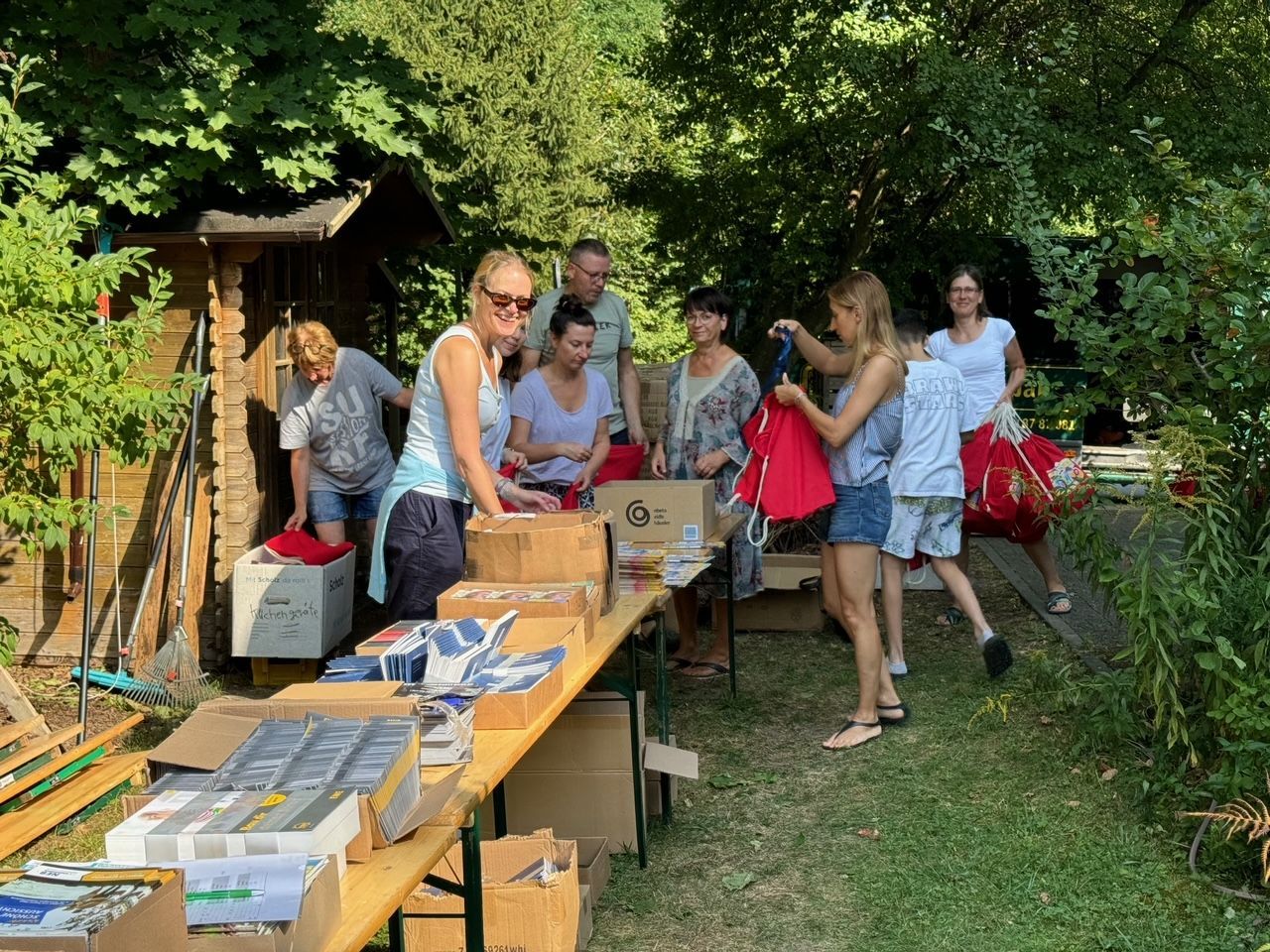 Bei über 30 Grad im Schatten wurden 850 Starterbeutel von fleißigen Helferinnen und Helfern gepackt und warten nun auf ihre Abholung.